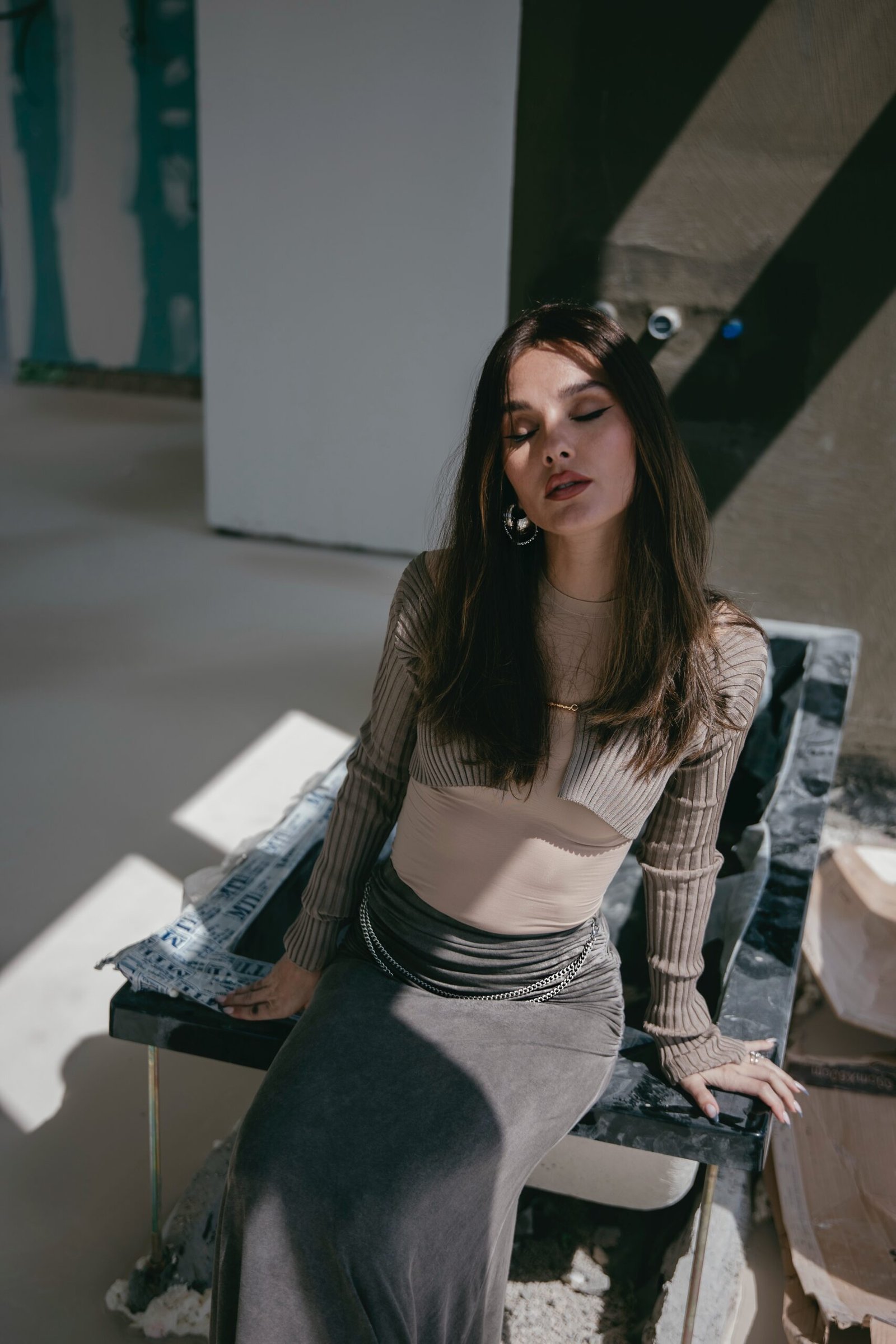 La jupe drapée greige