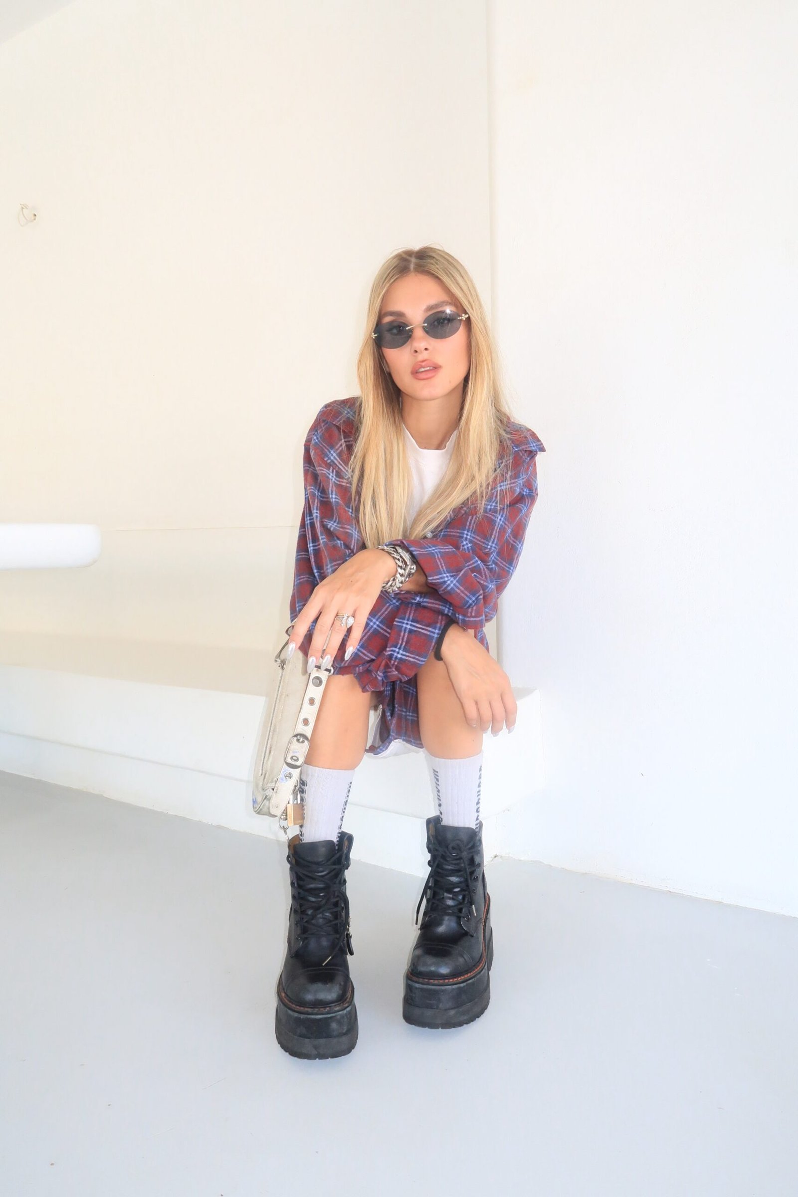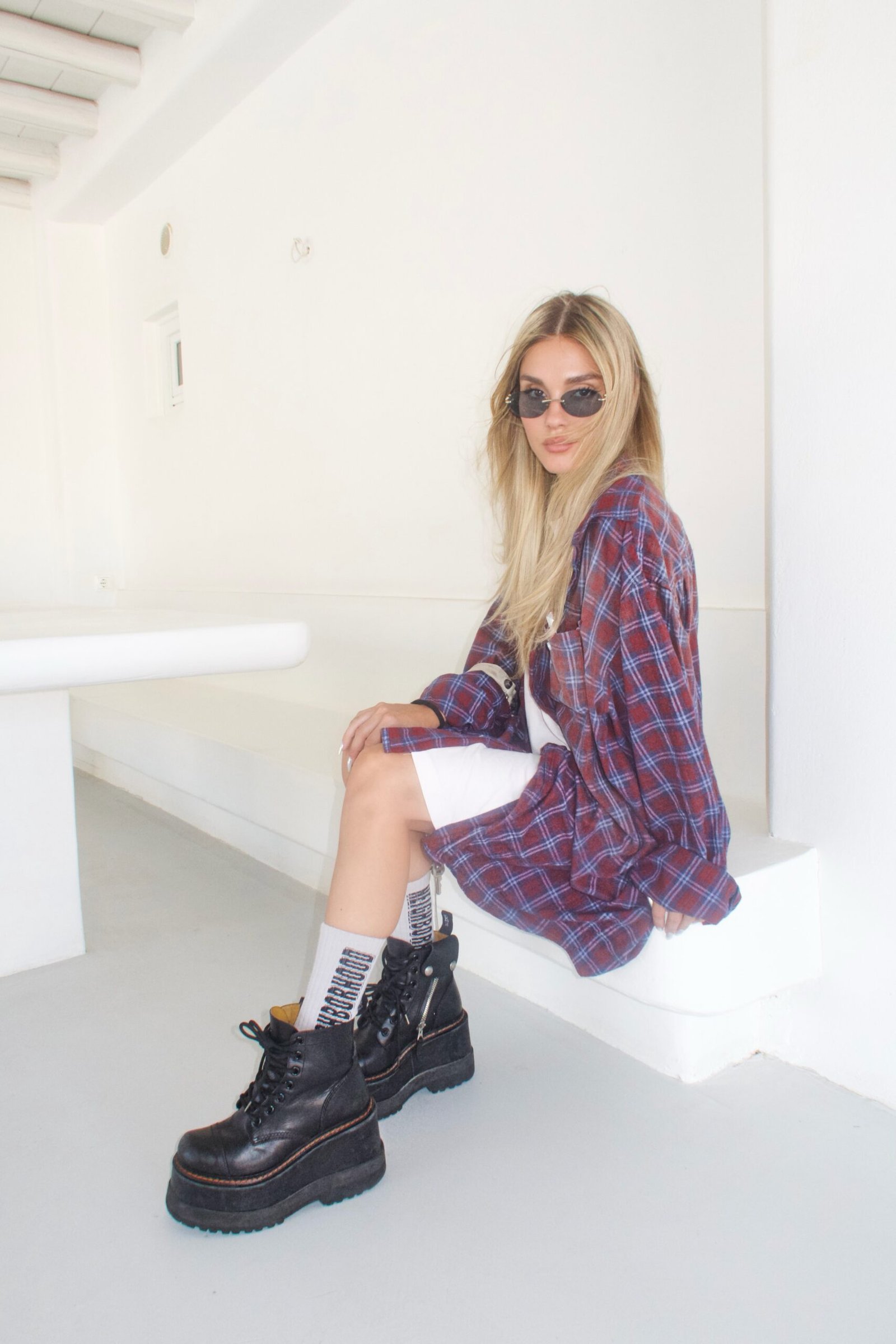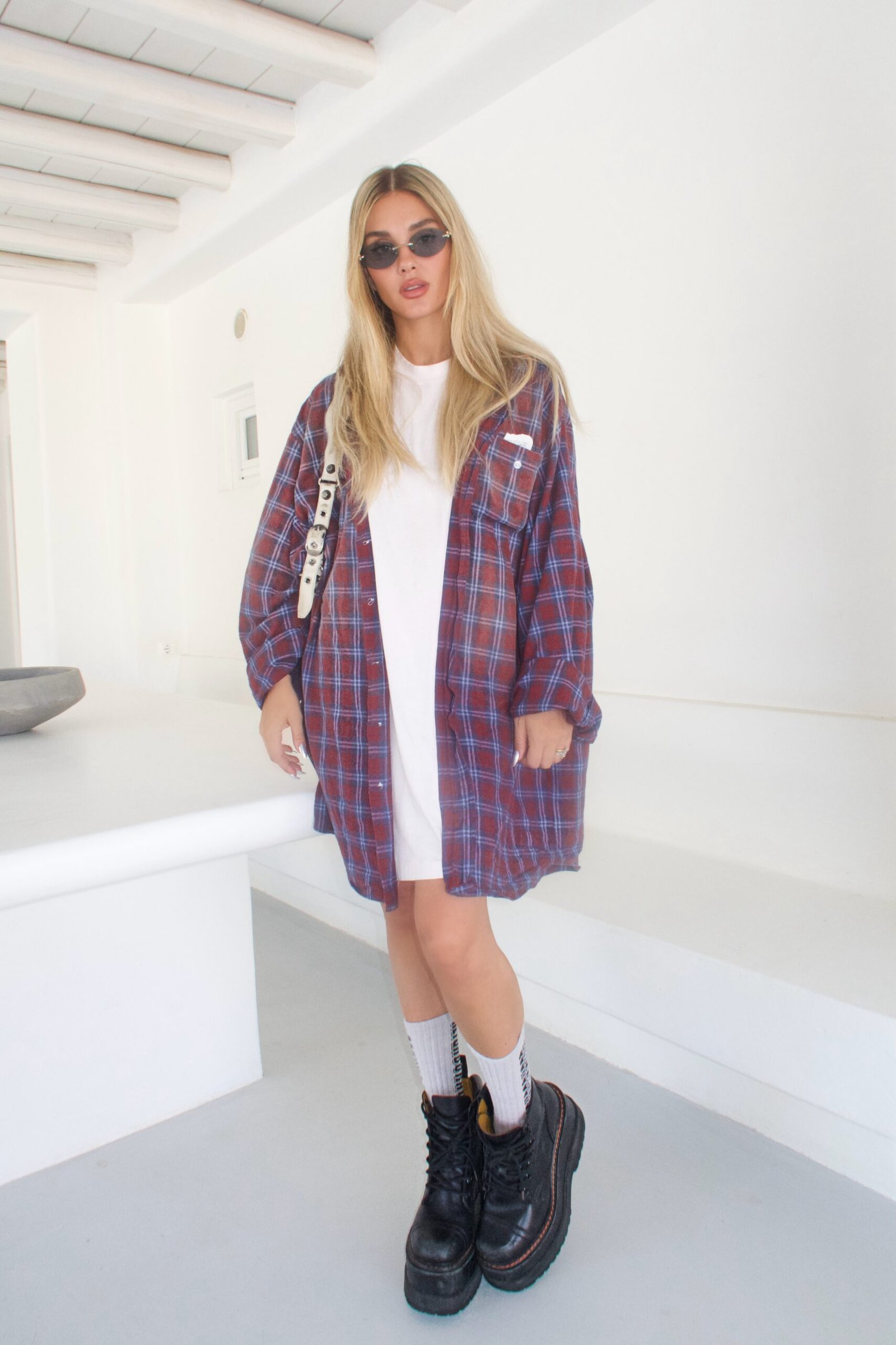 Pièce coup de cœur de la saison, cette robe recrée l’illusion parfaite d’une chemise vintage à carreau légèrement délavée portée un tee-shirt blanc. Un seul vêtement, deux styles en un, pour un look grunge affirmé et sans effort. Parfaite pour celles qui veulent marquer les esprits sans en faire trop.
