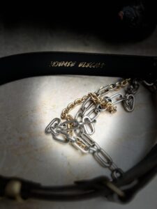 nan Notre ceinture « Metallica » a été conçue et réalisée dans nos ateliers en Israel. Fabriquée en cuir lisse avec une fermeture à boucle et agrémentée d’une triple chaîne épaisse et bicolore elle se portera aussi bien a la taille que sur les hanches.