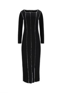 Confectionnée dans une matière agréable (95% coton, 5% lycra), cette robe présente un cotton côtelé qui épouse parfaitement les formes tout en offrant une grande liberté de mouvement. Sa coupe ajustée met en valeur la silhouette sans être trop moulante, et le col légèrement carré apporte une touche subtile de raffinement. Les coutures contrastées blanches ajoutent un accent visuel qui modernise ce modèle intemporel, parfait pour allier confort et style.